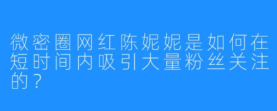 微密圈网红陈妮妮是如何在短时间内吸引大量粉丝关注的?